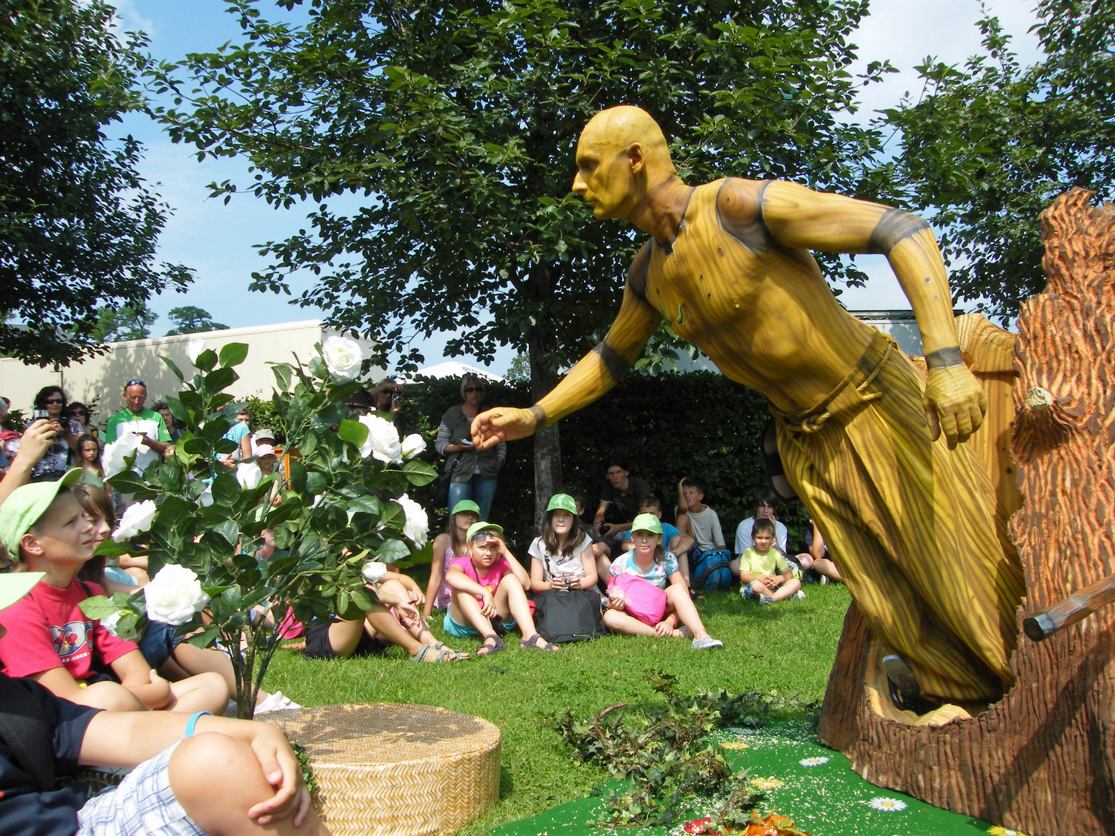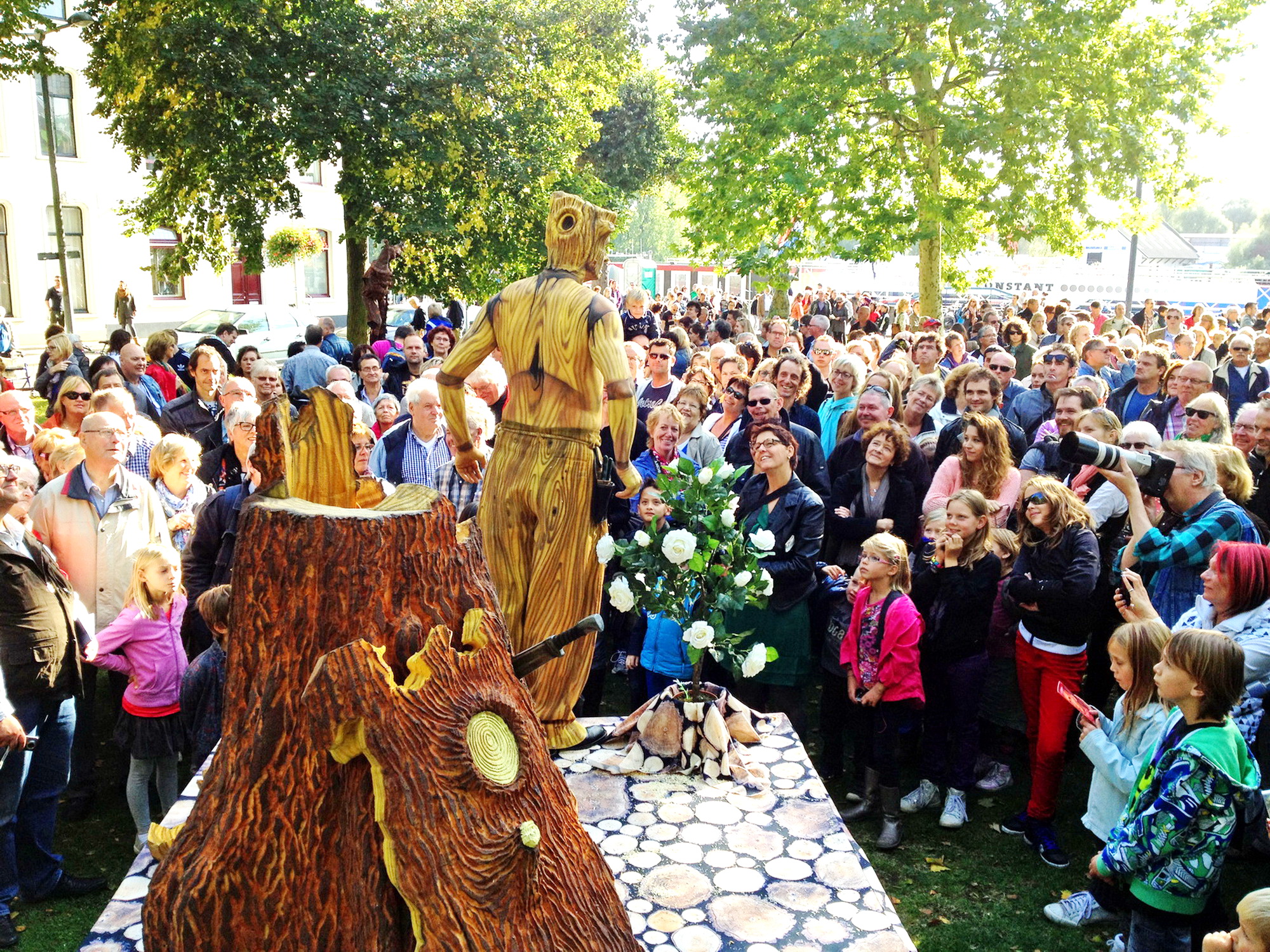 WOODY WOODman ist eine Holzfigur, die sich selbst aus einem Baumstamm schnitzt.
